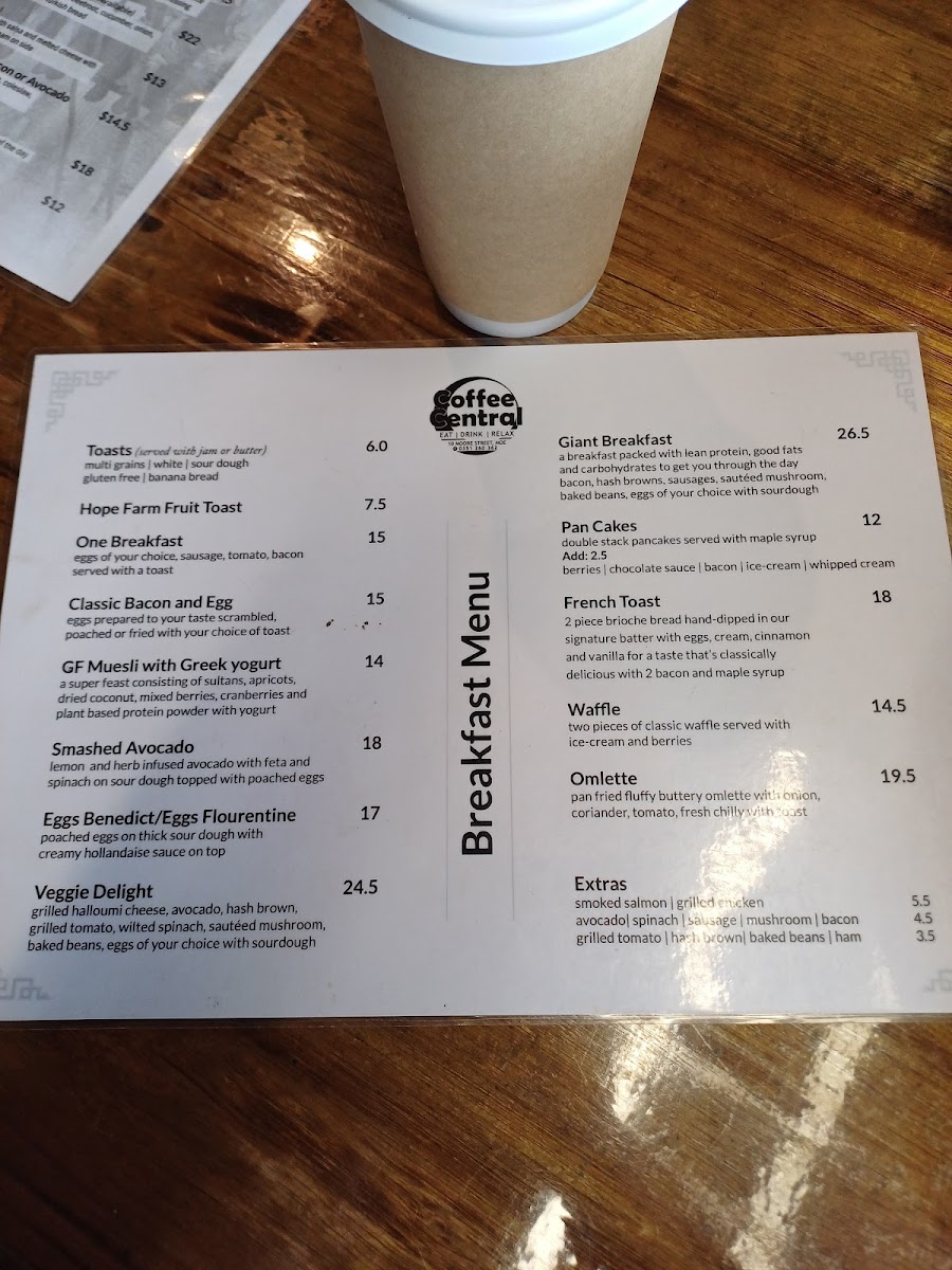 Coffee Central Moe Menu